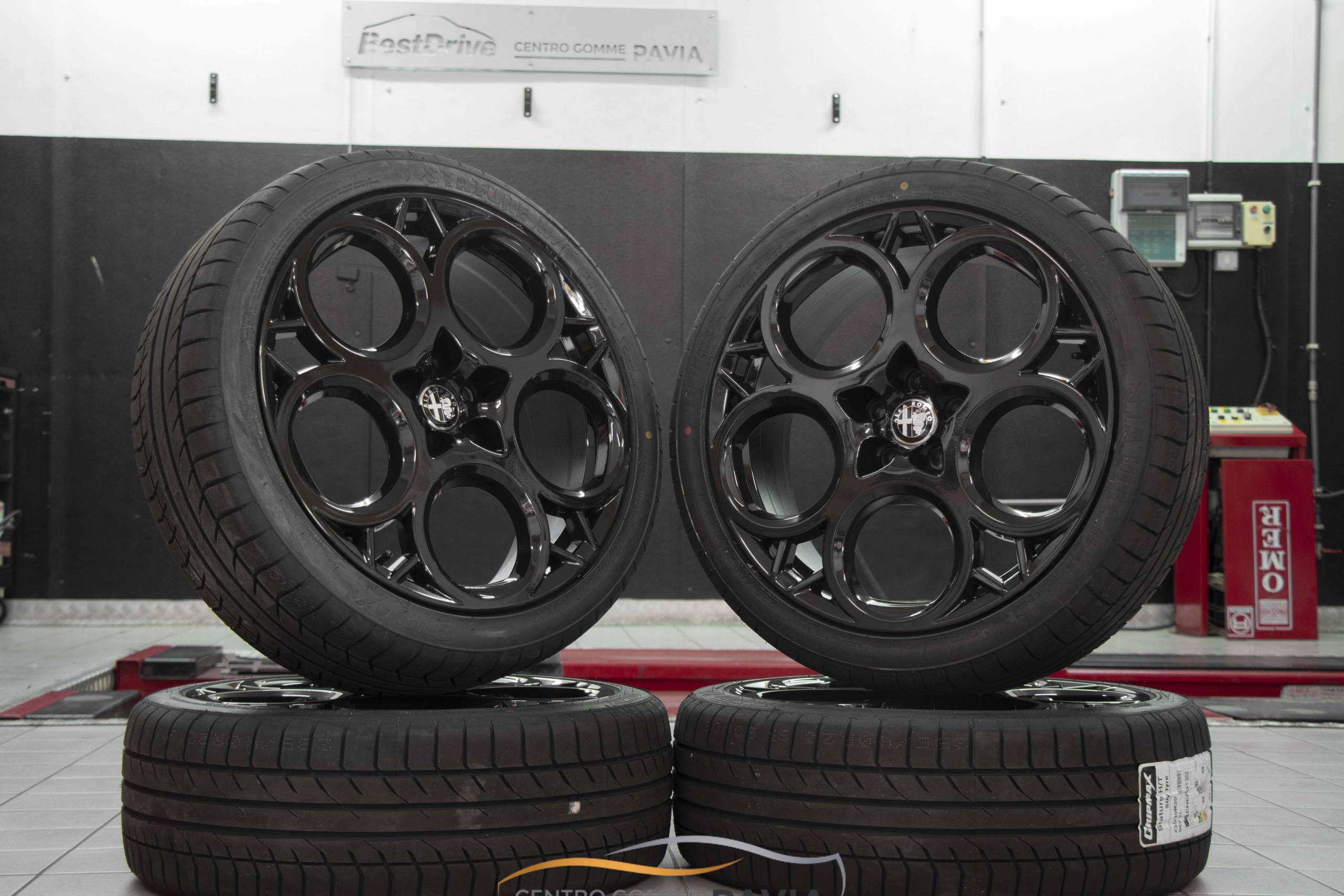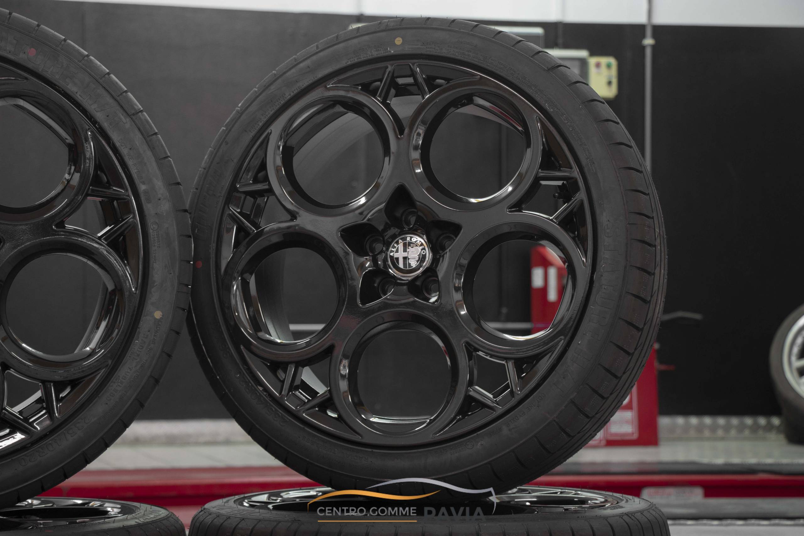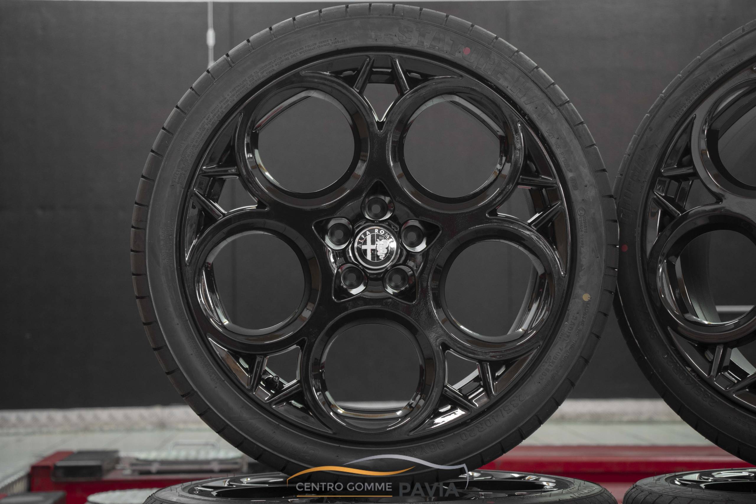 Kit completo composto da 4 pneumatici 235/40/20 96Y GRIPMAX e 4 cerchi in lega ORIGINALI ALFA ROMEO TONALE da 20″ COD: 50290618 PERSONALIZZATI IN COLORAZIONE NERO LUCIDO.