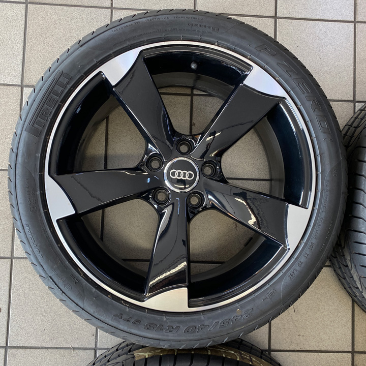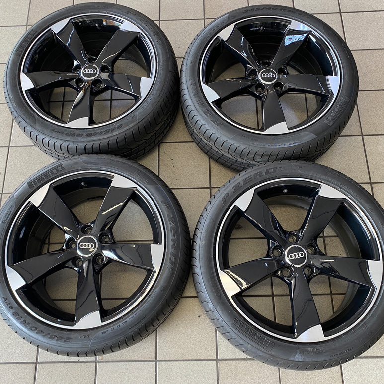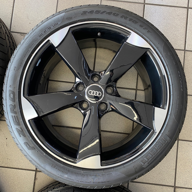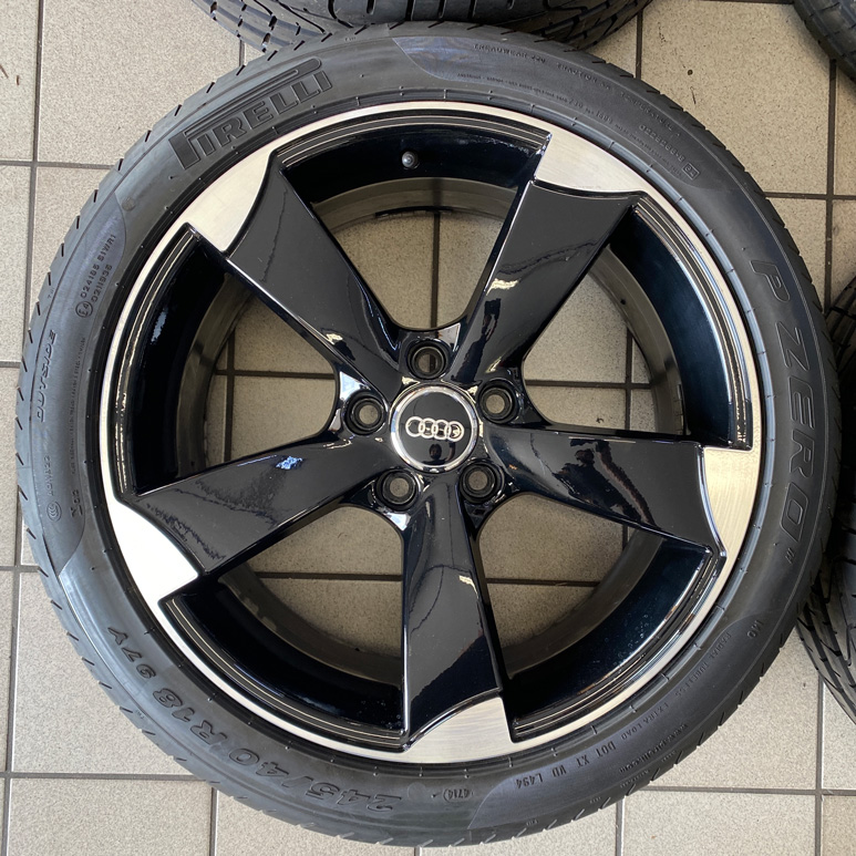 Kit completo composto da 4 pneumatici PIRELLI nuovi rimanenza di magazzino dot2014, 4 cerchi in lega MADE IN ITALY usati con minimi segni come da foto da 18″ pollici DEDICATI AUDI